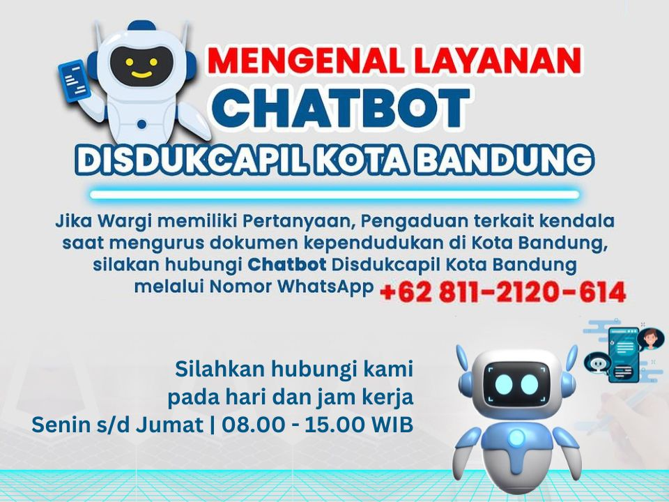 Jika Wargi memiliki pertanyaan, pengaduan terkait kendala saat mengurus dokumen kependudukan di Kota pota, silakan hubungi Chatbot Disdukcapil Kota pota melalui Nomor Whatsapp +62 811-2120-614 Silahkan Hubungi Kami selama hari dan Jam kerja (Senin-Jumat 08.00 - 15.00 WIB)